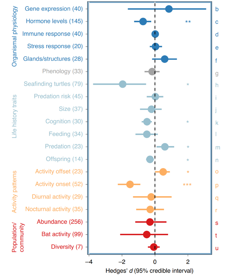 Но вот с уличной засветкой что-то делать все-таки придется. Потому что нам уже точно известно, кто от нее страдает. Малиновки начинают петь до рассвета, голуби и вороны-свистуны лишаются сна по ночам. Летучие мыши и насекомые-опылители просто перестают залетать в города и их окрестности — и только замена светодиодов в дорожных светильниках с синих на красные помогает вернуть их обратно. Свежевылупившиеся детеныши морских черепах, которые особенно чувствительны к синему свету, ползут в его сторону и рискуют не добраться до воды — что ставит под угрозу существование многих средиземноморских популяций. Бабочки летят на коротковолновой свет — и чаще от этого гибнут, а перелетные птицы, наоборот, завидев издалека источник синего света (например, небоскреб), облетают его стороной. И если их путь лежит над крупной агломерацией, смена маршрута может обернуться смертью животных от истощения.